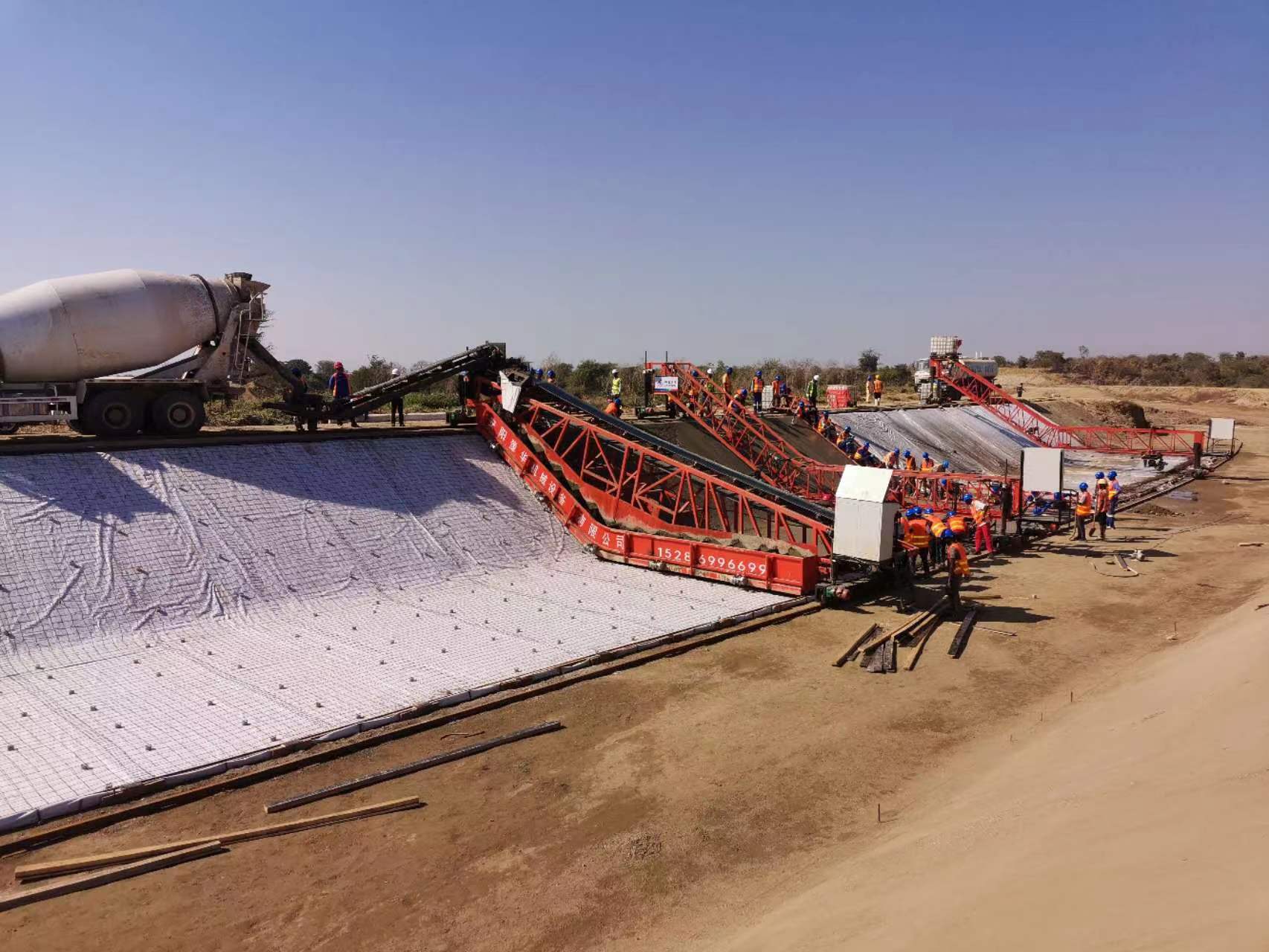 在特点方面,这些摊铺机具有很强的适应性。它们可以根据渠道的特定断面(如U型、梯形、矩形)、坡度、尺寸和地质条件进行定制化设计,确保设备与项目匹配。同时,采用高强度国标钢材和先进的焊接工艺制造的坚固机架,保证了设备在长期、高负荷工况下不变形、不抖动,运行较度平稳。此外,智能控制系统的集成化设计,操作简便直观,还可选配激光/超声波自动找平系统和GPS导航系统,实现精准高程与线型控制,大幅降低对操作手经验的依赖。